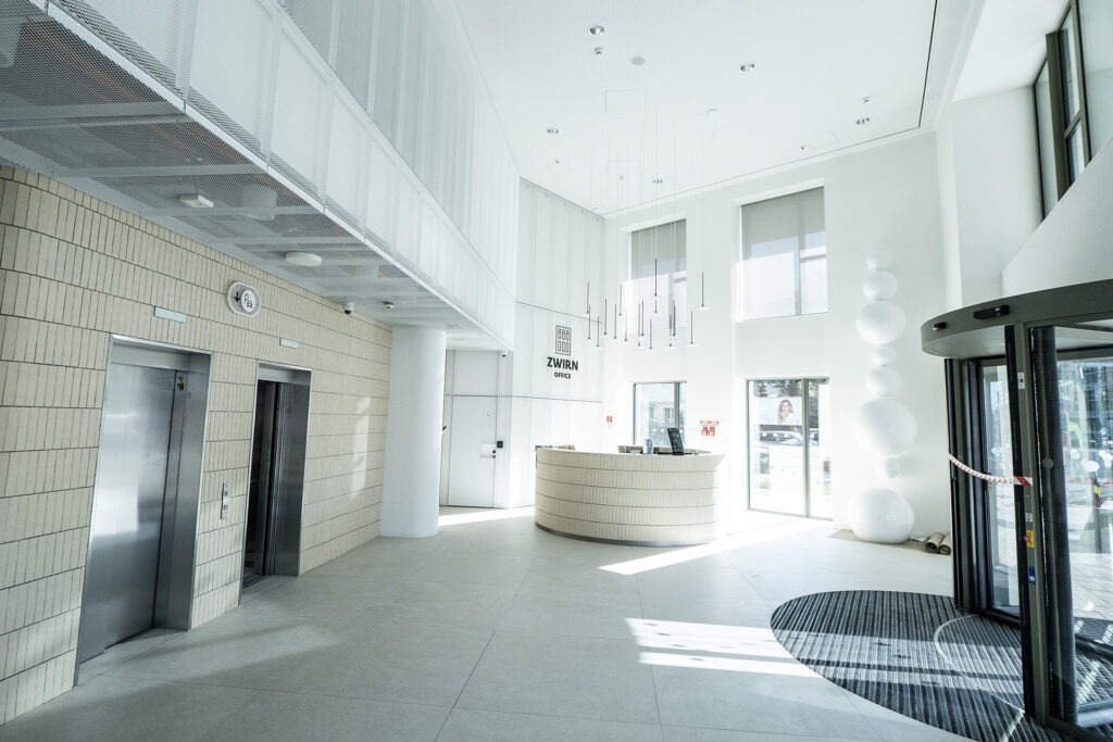 Výsledkom je ničím nerušený dizajn stien a vynikajúca priestorová akustika, ktorú pocítite okamžite pri vstupe do hlavnej lobby administratívnej budovy Zwirn Office na Košickej 11 v Bratislave.